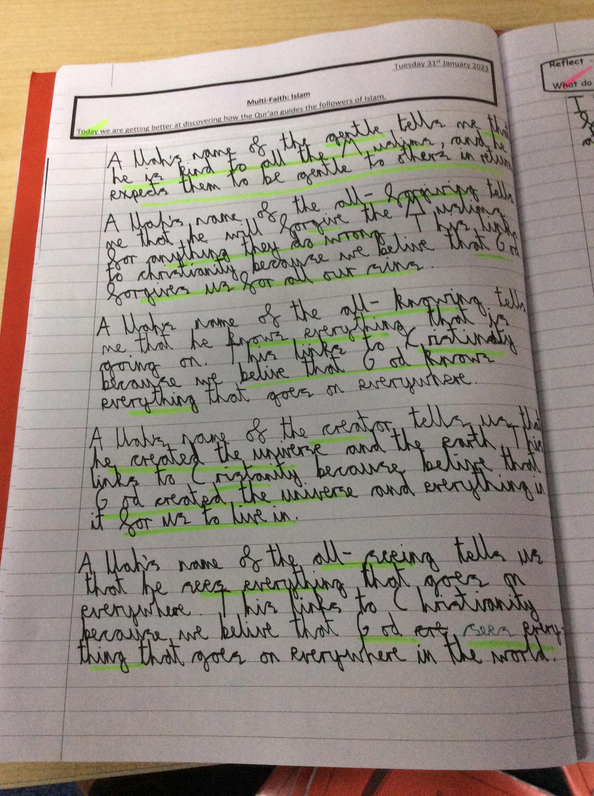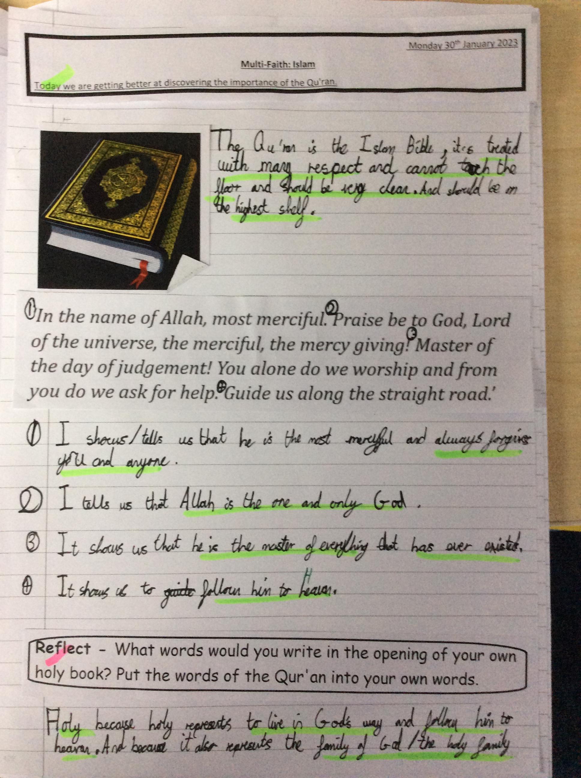 For our multi-faith week, Year 4 looked at the Islam and the Qur'an. We looked at what the book means to Muslims and also how they use a subha to remember the 99 names for Alllah.
