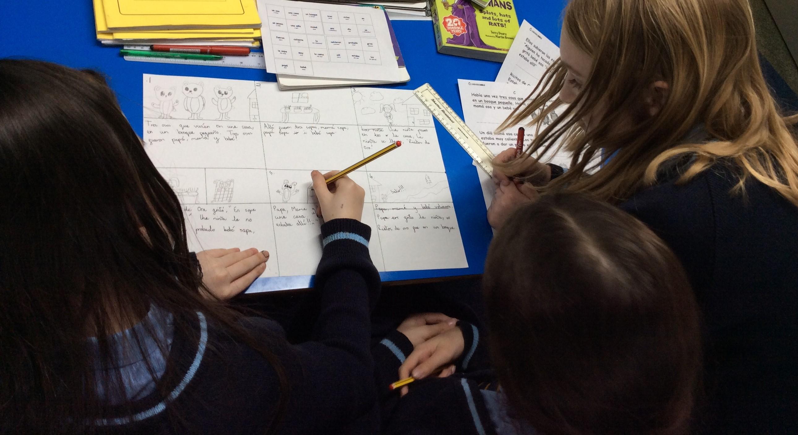 In Spanish, children have been looking at the story of Goldilocks. We listened to the story before concentrating on the key words. From this we ordered the key parts of the stories in Spanish and applied this to create our own storyboards.