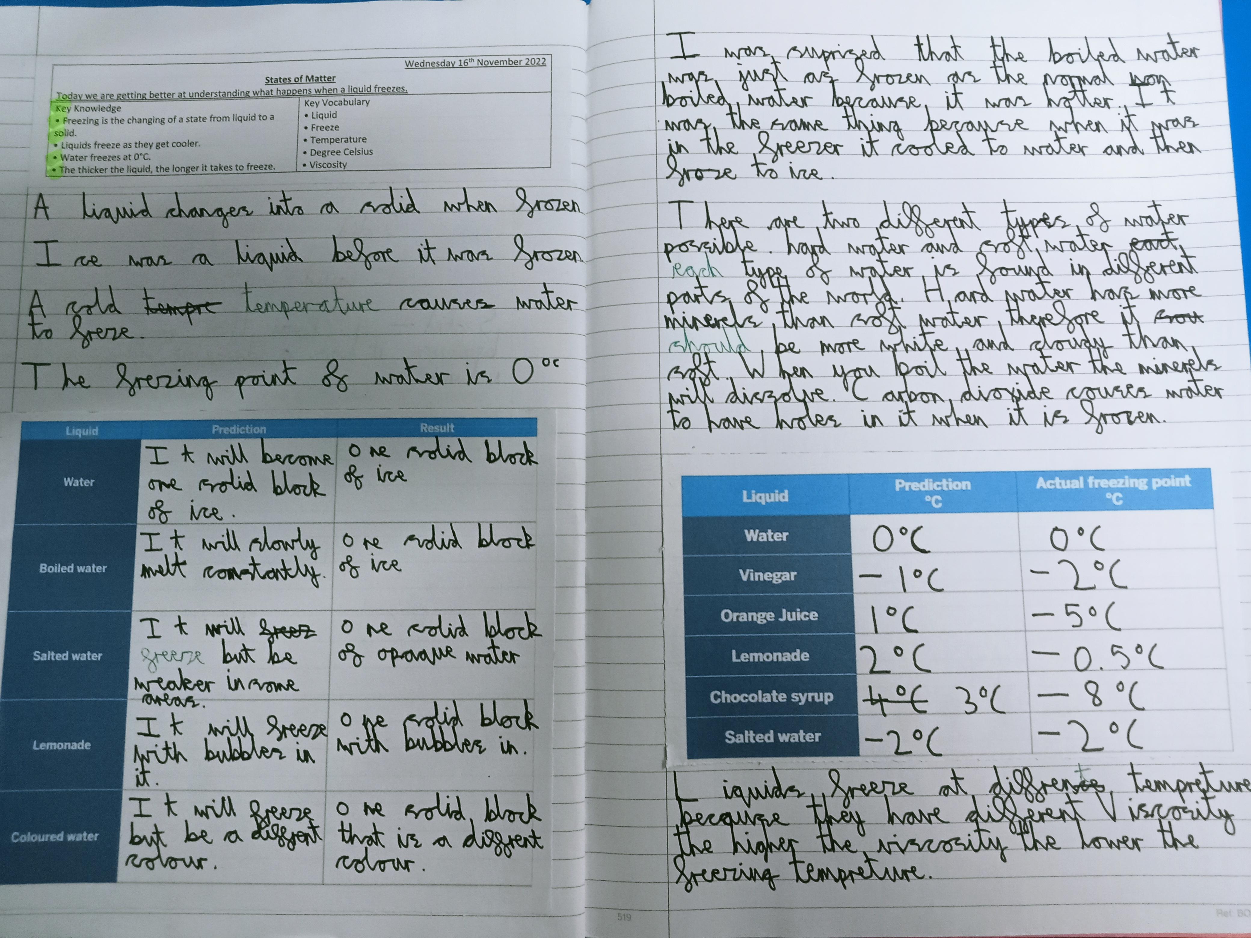 In Science we are investigating different states of matter