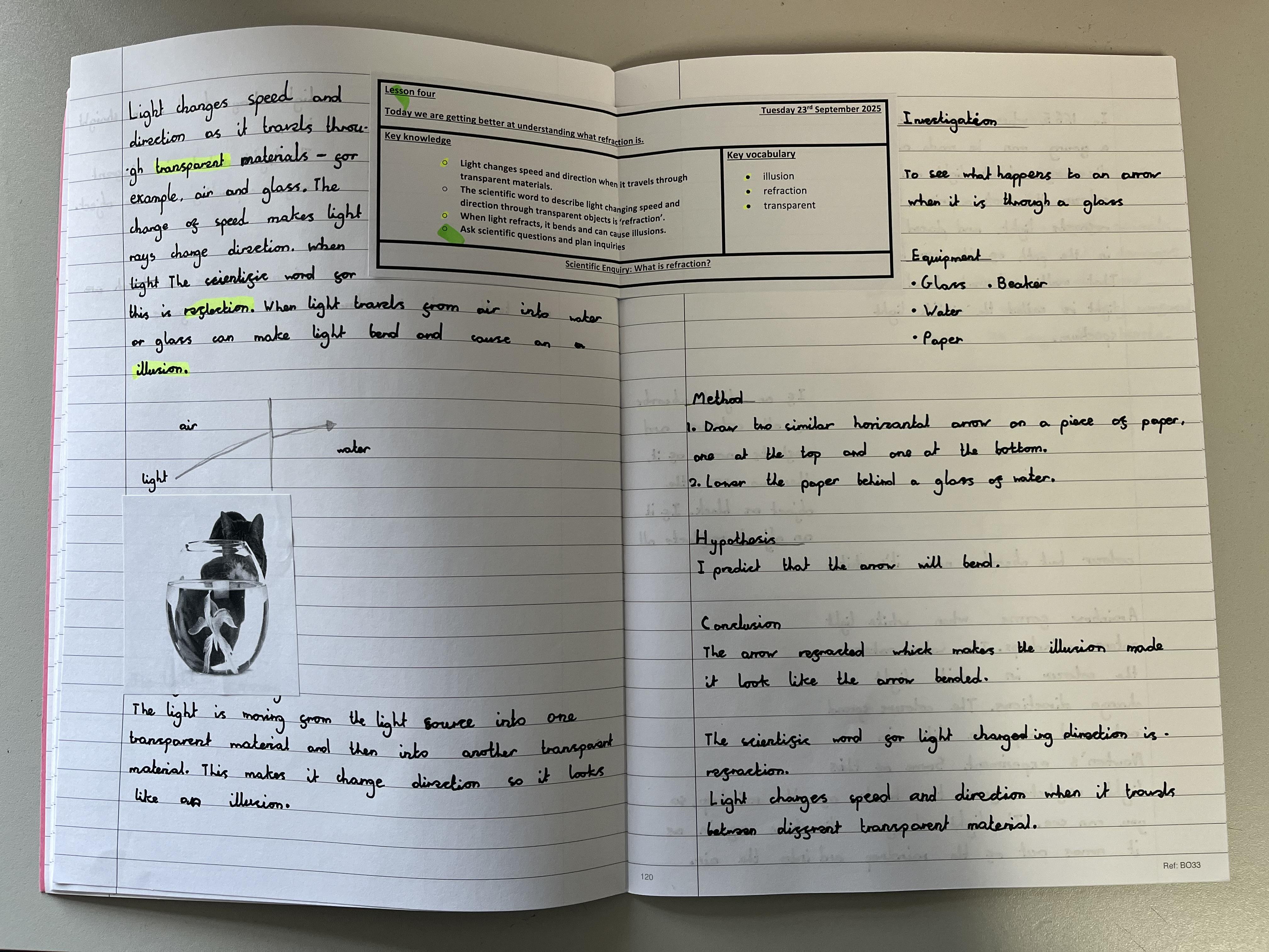 This half term, we have been looking at light and perception - focusing on how the eye works, how light travels, how shadows are formed. We have also completed investigations where we have posed a scientific question, made a hypothesis, written a method, included our variables (dependent, independent and controlled), take results, written a conclusion and evaluated our investigation.