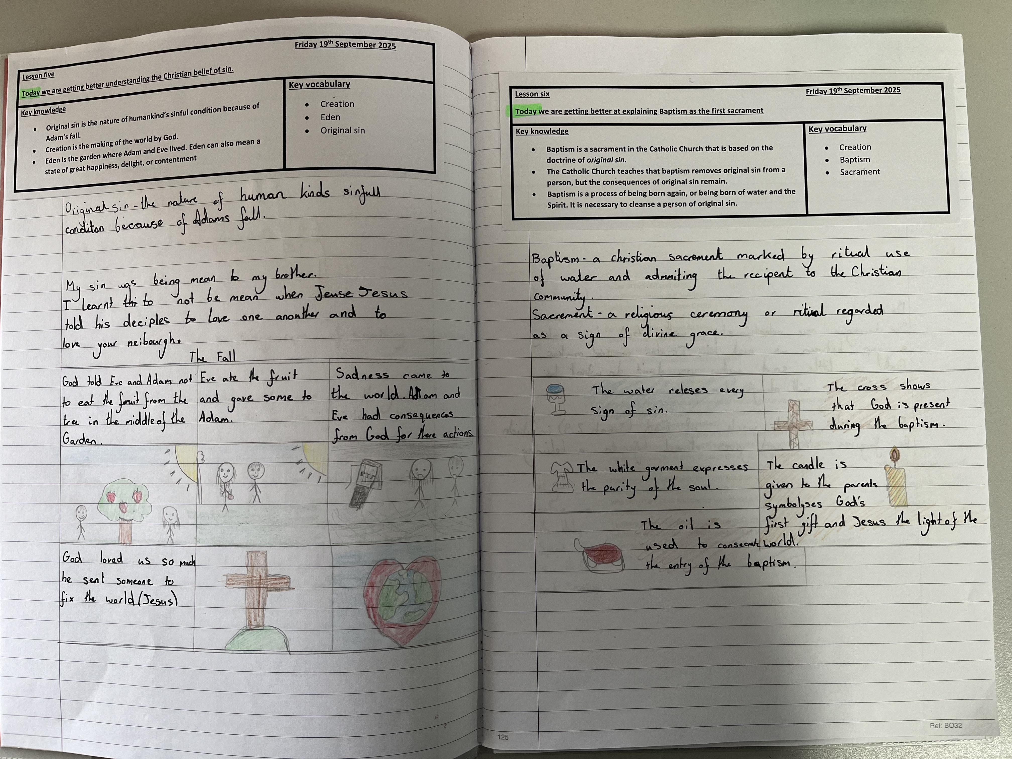 Y6 are working through the first branch of our new RE curriculum, Creation and Covenant. We have been making links between the second account of creation, Laudato Si and the Nicene Creed. We have reflected on our own Garden of Eden and how Baptism gives us new life in Christ.