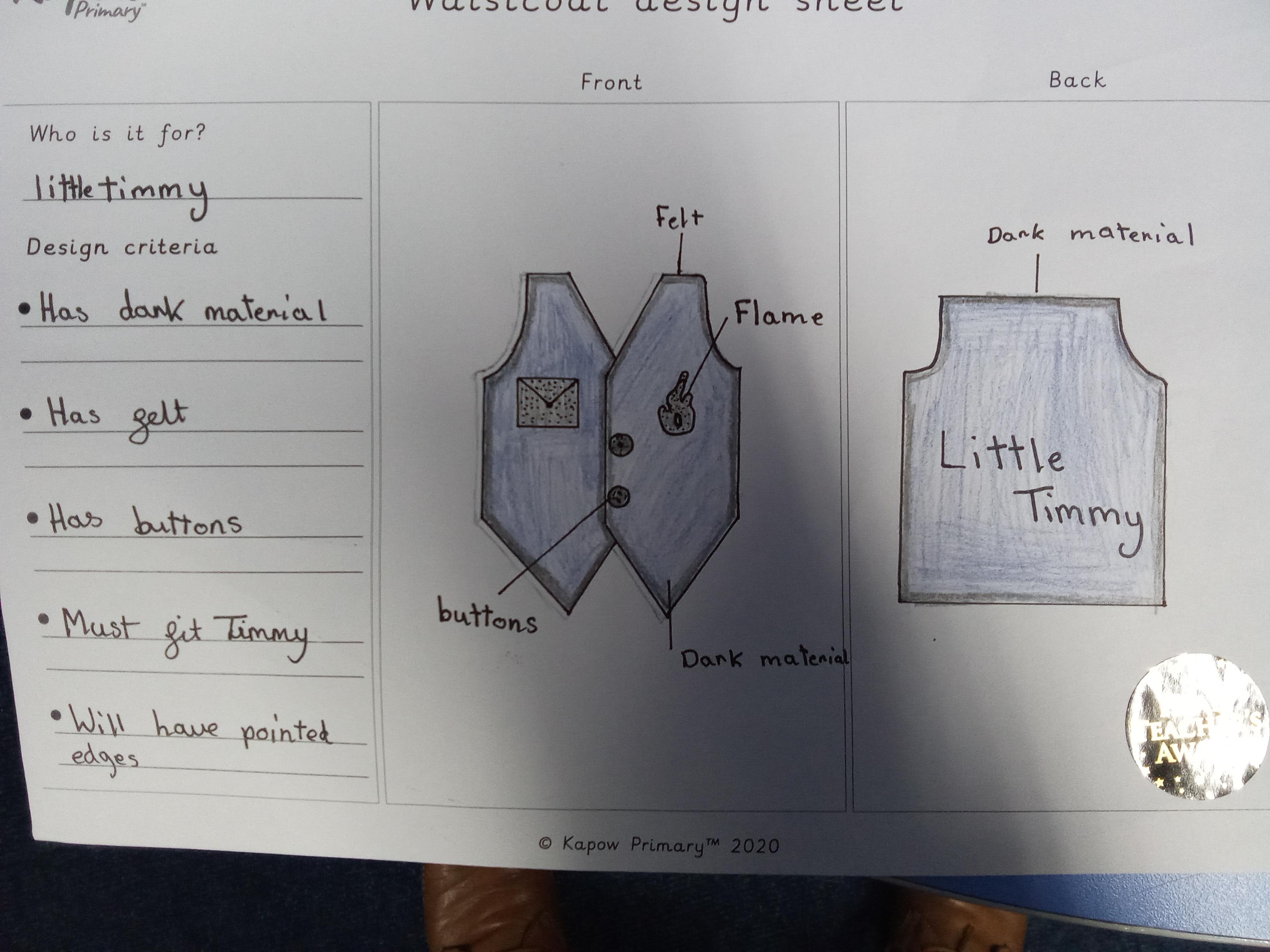 DT: Textiles: Waistcoat